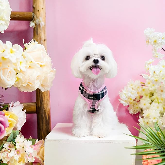 SCENEREAL Puppy Dog Harness with Leash Set for Small Medium Sized Dogs, Soft Mesh Step in Pet Harnesses and Leash, No Chock Plaid Adjustible No Pull Vest for Dogs Cats, Chihuahua,Bulldog (Pink XS)