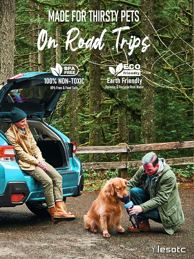 - Large Capacity: lesotc dog water bottle with a volume of 28oz/800ml. Dog travel water bottle can provide safe, fresh, and healthy water for puppy during long walking, travel, hiking, camping and other outdoor activities. It’s addition to your dog accessories, perfect for dog beach essentials and dog camping essentials