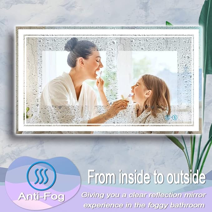 - 😎【TOP QUALITY & LONG ENDURANCE】T5.0MM Copper Free Eco-friendly Glass mirror, which is good for protecting you and environment.Aluminum alloy material back support and Fully enclosed backplate design, that prevent fog from entering the circuit of the mirror.Energy efficient LED light strip,excellent illumination and low consuming energy,efficient LED light strip bring high quality and durable use experience. The mirror has a memory function. When the power is turned off and then restarted, it will return to the previous state of use.