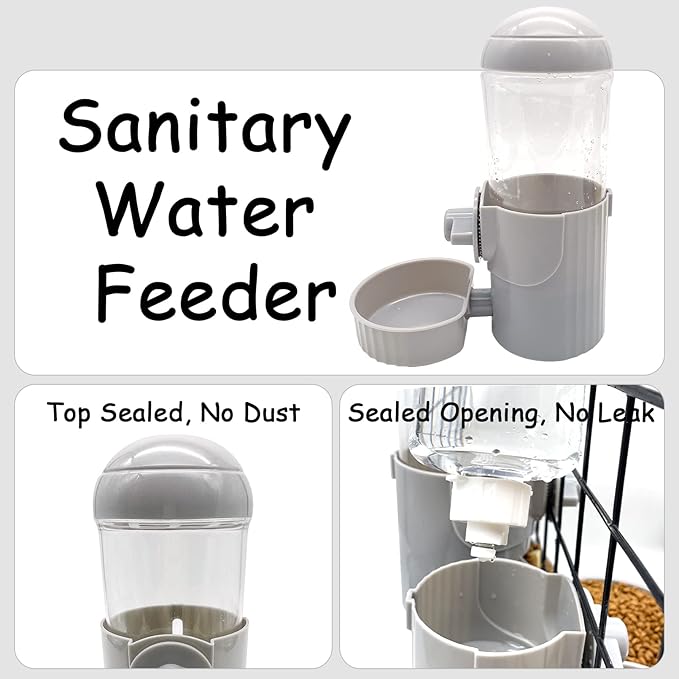 - Sealed Refilling Opening: The refilling openings of our water feeders are sealed, no leak, reduce waste. Compared with other traditional water feeders, top sealed water feeders can prevent mess and dust from polluting the water, provide your pets with sanitary drinking water and a more comfortable experience. The replenishing to the rabbit water bowls is based on gravity, can control the amount of water, no drips to the floor