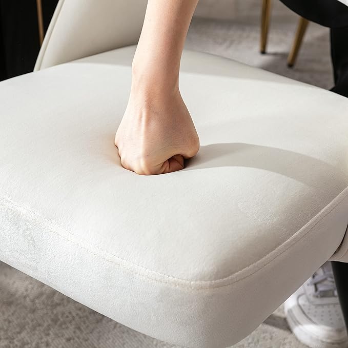 - STURDY & COMFY: A plush velvet fabric upholsters the seat and backrest. Padded with high-density foam provide you comfortable seating. Black metal finish for a sturdy look. The legs tipped with rubber leg pads to prevent the chair from sliding on and scratching floors