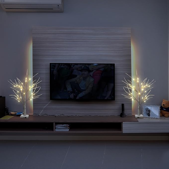 Set of 2 Warm White Birch Tree Light with Battery or USB Powered 24 LED Fairy Light Spirit Tree Tabletop Twinkling Tree Light Decor for Home Party Bedroom Wedding Thanksgiving Christmas Decoration