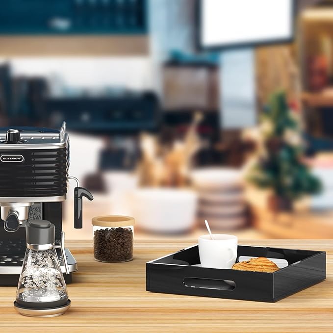 Acrylic Serving Tray with Handles-12x12x2.36Inch-Decorative Tray Letter Tray Organizer for Ottoman Coffee Table Countertop, Black
