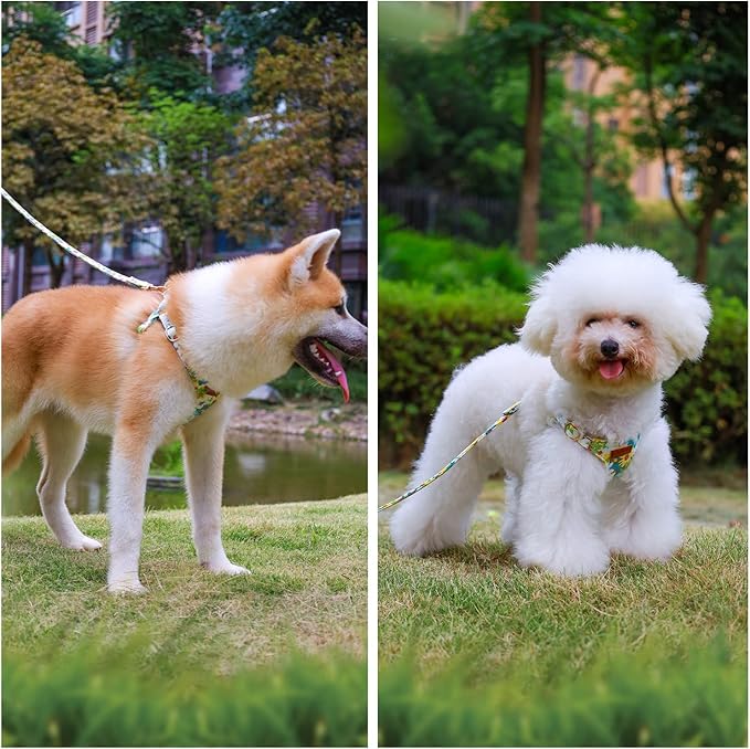 CHEDE No Pull Floral Pattern Dog Harness- Lightweight and Soft Dog Harness, Adjustable Small Dog Harness and Leash Set, with Dog Leash, Suitable for Puppy Small and Medium-Sized Dog