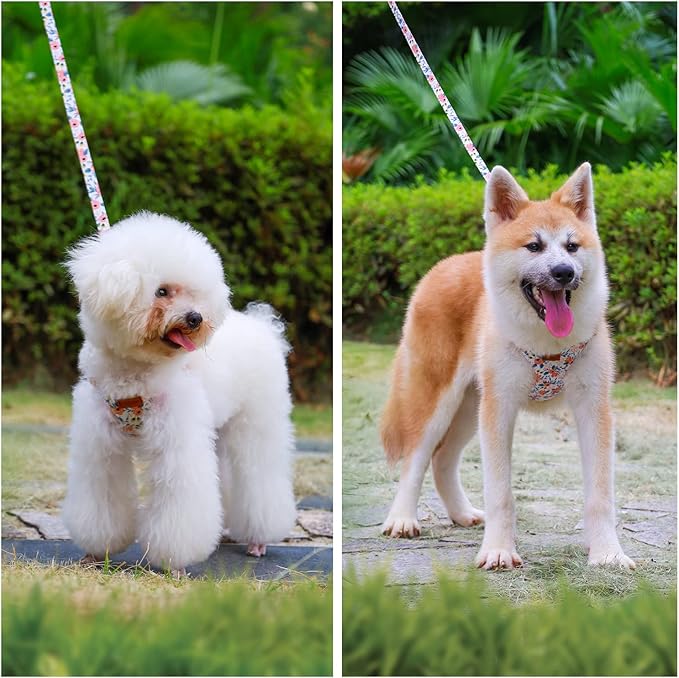 CHEDE No Pull Floral Pattern Dog Harness- Lightweight, Soft, Adjustable Small Harness and Leash Set, Suitable for Puppy Small and Medium-Sized Dog (XS, Orange Rose)