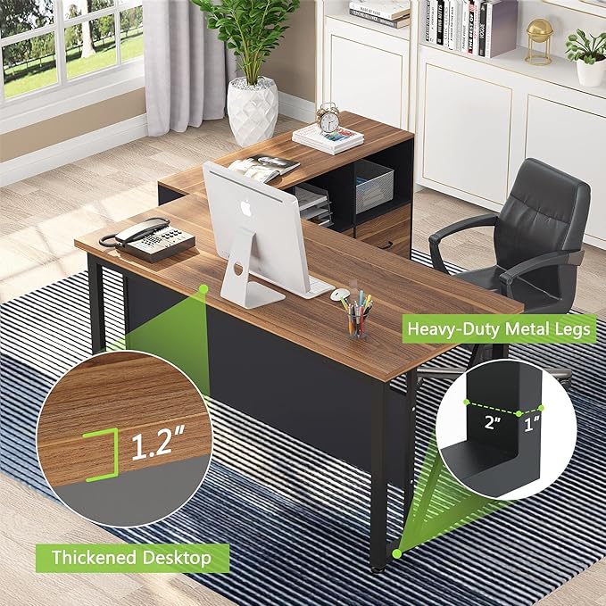 - Tribesigns 55 inches Executive Desk and 43" lateral File Cabinet, L-Shaped Computer Desk Home Office Furniture with Drawers and Storage Shelves, Office Table with Cabinet