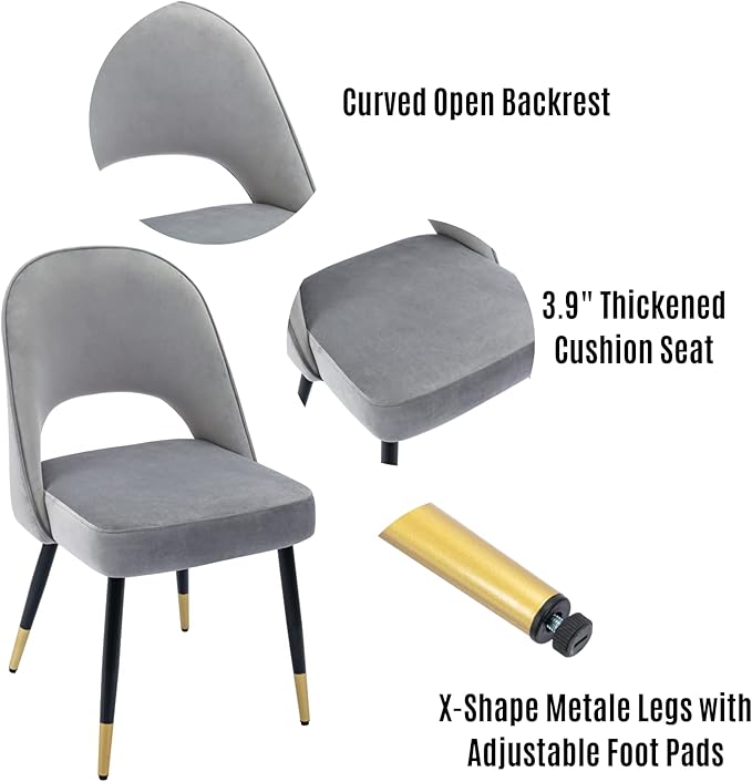 LukeAlon Classic Velvet Dining Chairs Set of 4, Upholstered Open Back Kitchen Chairs with Metal Legs Armless Side Chairs Mid Century Dining Chair for Dining Room, Grey