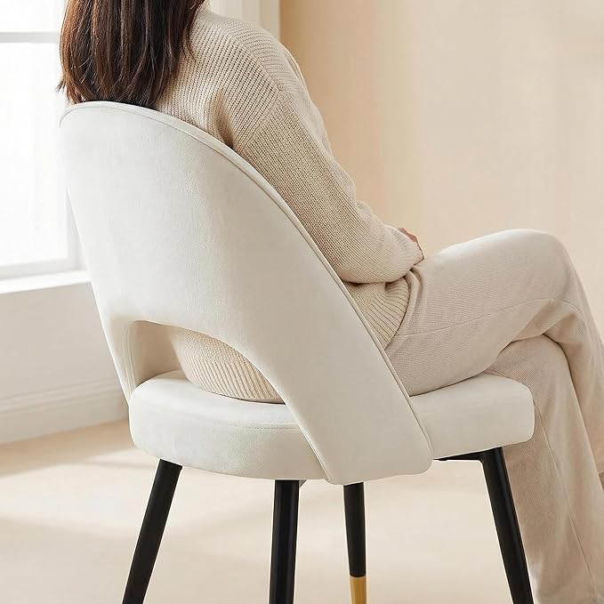 LukeAlon Classic Velvet Dining Chairs Set of 2, Upholstered Open Back Kitchen Chair with Metal Legs Armless Side Chairs Mid Century Dinner Chairs for Dining Room, Beige