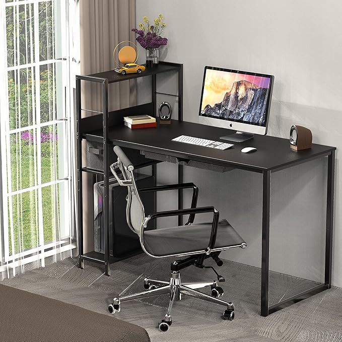 - Functional 46-Inch Desktop: Provides a generous surface for monitors, laptops, and daily work tools, making it ideal for home office setups or study areas.