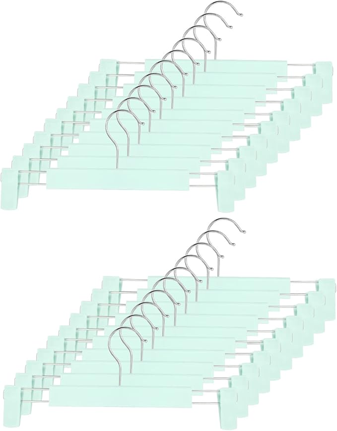 Clothes Pants Hangers, Space-Saving Skirt Holders with 360 ° Swivel Hooks, Adjustable Clips, Trouser Hangers, Clothes Coat Garment Jeans Hangers (20 Pack, Green)
