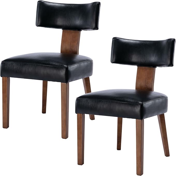 - ✅Mid-Century design set of 2 dining chairs. Upholstered in supple faux leather.