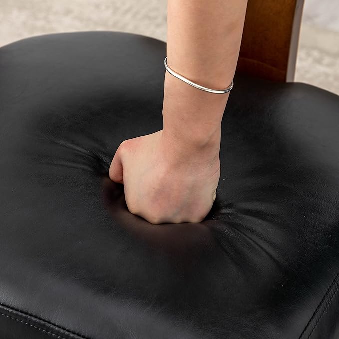 Mid Century Modern Dining Chairs Set of 2 PU Leather Upholstered Side Chairs, Modern Kitchen Armless Parson Chairs Solid Wood Dining Chairs, Black