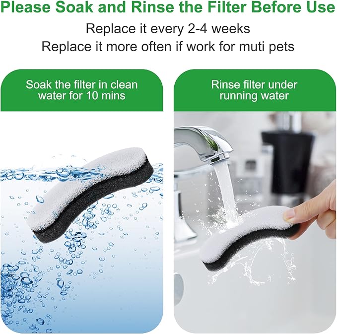 - đșăReplace RegularlyăSuggest replacing cat fountain filters every 2 to 4 weeks, please change it more often if your water fountain serve for multiple pets.