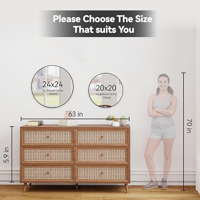 - Mirror Size: 20x20 inch. It can visually make your home more spacious The wall mounted mirror provides a crystal-clear, distortion-free reflection. A best choice for your entryway, bedroom, living room wall decor or over a dresser.