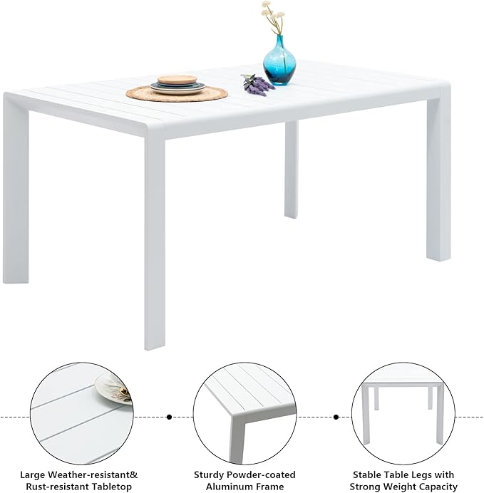 Outdoor Dining Table for 6, 60"x35" Patio Rectangular Dining Tables Powder-Coated Aluminum Table Top Heavy Duty Patio Furniture for Garden,White Frame