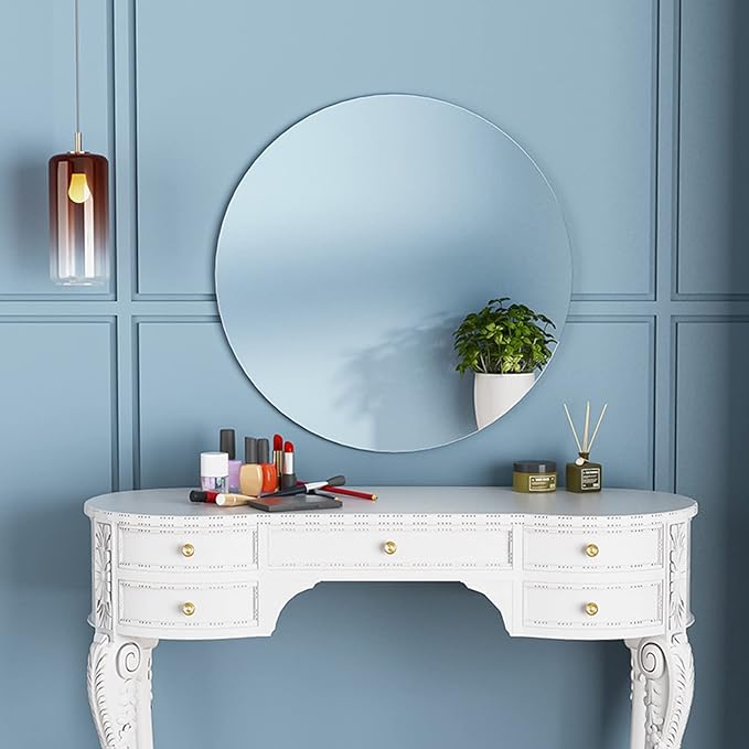 - Multiple Ways to Use: Round wall mirror come with strong foam glue pad, easy to attach the mirror to the smooth surface, like wall, door. It's frameless, can be cut, also you can DIY it to make decoration mirror with need.