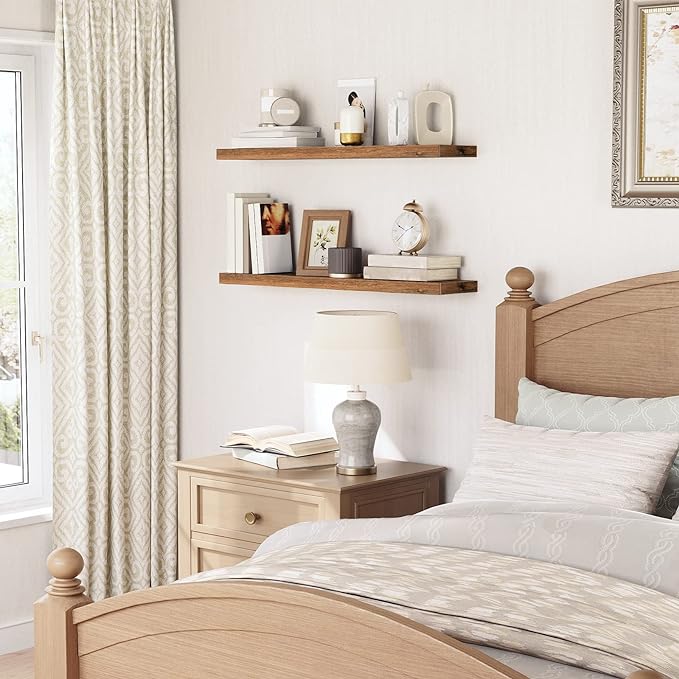 - Exquisite Wall Surface Decoration: Two classic and elegant rustic brown wooden shelves can be placed on each wall surface of all household rooms. This floating shelf for room wall is not only for its decoration effect, but also for this wall shelves high practicality. It is an ideal place to display your beloved photos, trophies and other delicate ecorations