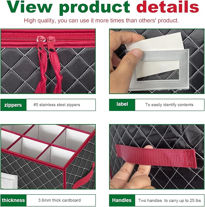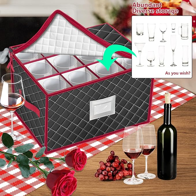 - [LARGE CAPACITY] Christmas stemware storage cases with lids can holds 24 of your favorite wine glasses or stemware up to 9.8 inch height.Each size:15.5" x 12.5"x 9.8".