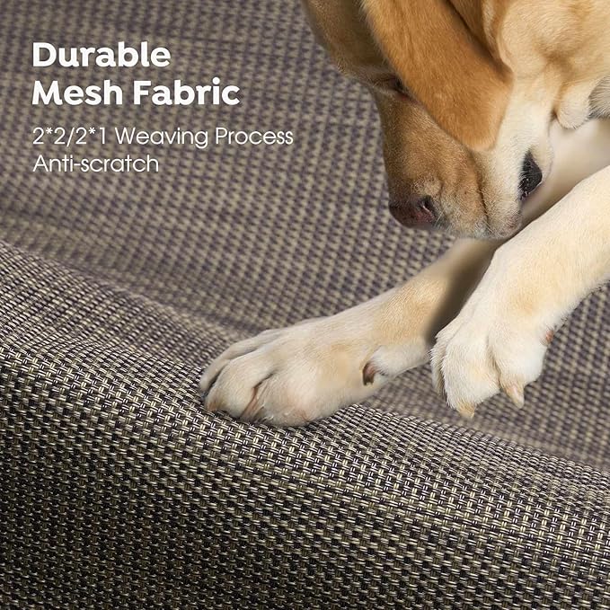 Veehoo Outdoor Elevated Dog Bed, Raised Dog Cot for Large Dogs, Cooling Washable Waterproof Pet Hammock Beds with Slope Headrest, Breathable Mesh and Sturdy Frame, Large, Brown, CWC2204