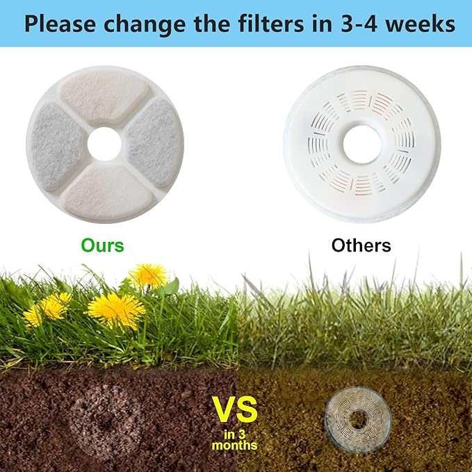 - ⚠️Suggestion-Soak the cat filters for water fountain for 20 seconds before use. To maintain the filtering effec,recommended to replace the cat fountain filters every 2-4 weeks.Any problem or help if you need, please tell us by email and we are here to help.