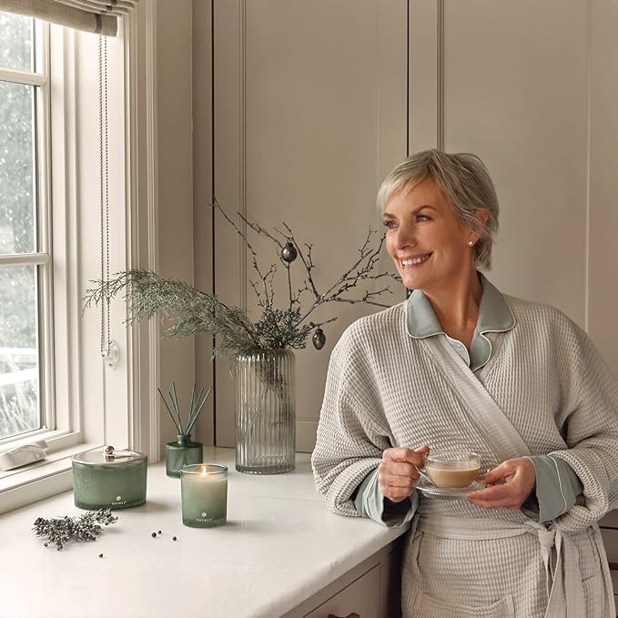 Thymes Scented Candles for Home Decor - Luxury Home Fragrance Gifts for Women & Men - Winter Candles with Crisp Notes of Sage, Eucalyptus, & Cypress Needles - Sage-Green (Highland Frost, 6.5 oz)