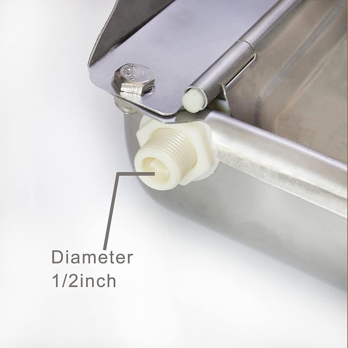 - The 304 stainless steel automatic animal drinker is made of features an automatically controlled water float, Suitable for various animals, livestock, and farms.The water bowl Size: exterior size 10*10*4inch, water pipe length: 39.3inch, volume:1.6 gallons of water