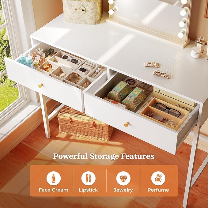 - [Happy Bedroom Makeup Time]: Start a well-organized morning with SUPERJARE white vanity desk in your bedroom, simple shape and modern matching colours evoke the memory of elegance