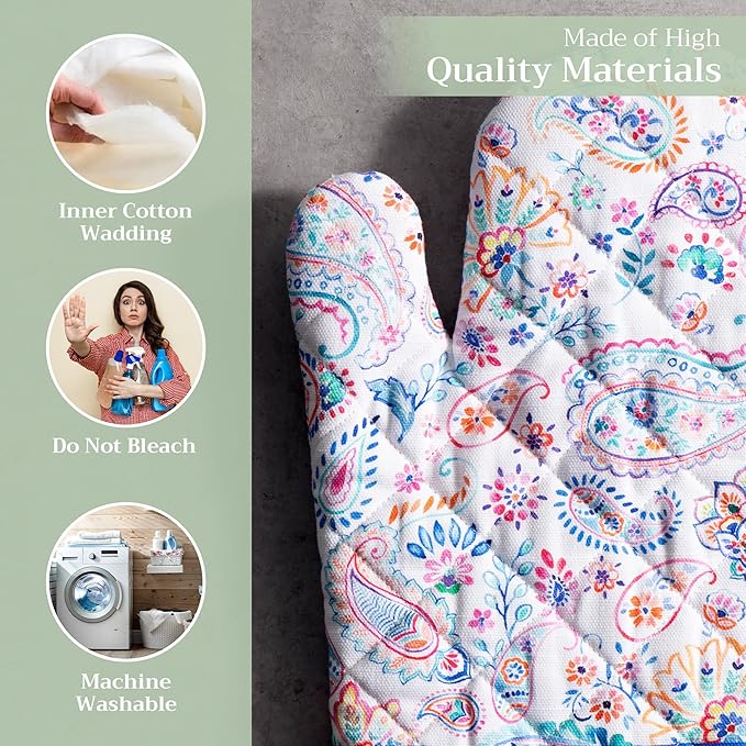 Maison d' Hermine Oven Gloves 100% Cotton Oven Mitt 7" x 13" with Loop Heat Resistant, BBQ, Cooking Gloves, Baking, Grilling, Kitchen, Handling Hot Pans Spring/Summer (Pack of 1, Indian Floral)