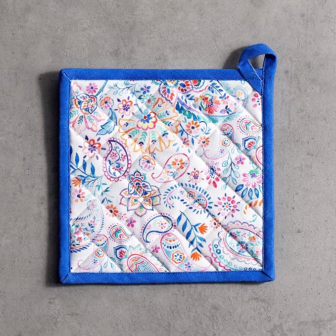 Maison d' Hermine Pot Holders 100% Cotton Heat Resistant Potholders 8" x 8" Hot Pads with Loop BBQ, Cooking, Baking, Grilling, Kitchen, Handling Hot Pans Spring/Summer (Pack of 1, Indian Floral)