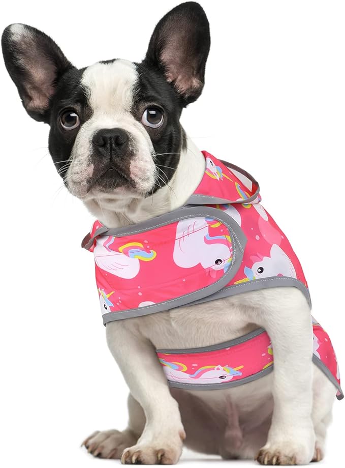 HDE Dog Raincoat with Clear Hood Rain Jacket Poncho for Small Medium Large Dogs Unicorn Ducks Pink - S