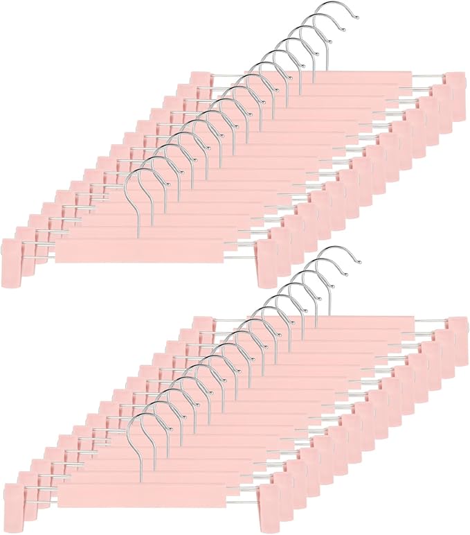 Clothes Pants Hangers, Space-Saving Skirt Holders with 360 ° Swivel Hooks, Adjustable Clips, Trouser Hangers, Clothes Coat Garment Jeans Hangers (30 Pack, Pink)
