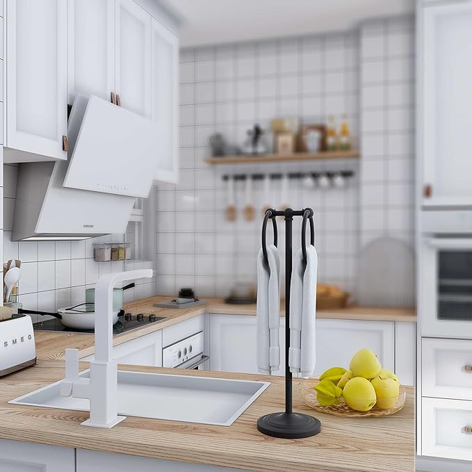 - Free standing design:This hand towel rack can be placed anywhere on the counter and can be easily moved,perfect for bathroom,kitchen,pool,or dorms.Includes all hardware needed for installation,just take 5 mins to install it with the instruction.