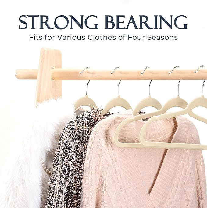 HOUSE DAY Beige Velvet Hangers 40 Pack, Non Slip Clothes Felt Hanger Heavy Duty for Coat, Premium Slim Space Saving Suit Hangers for Closet Organizer, 360° Rotating Silver Hook