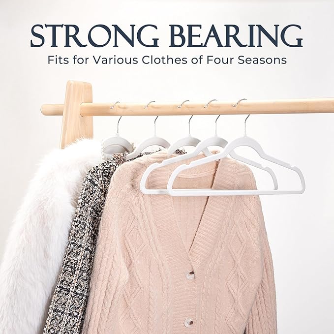 HOUSE DAY White Velvet Hangers 20 Pack, Non Slip Clothes Felt Hanger Heavy Duty for Coat, Premium Slim Space Saving Suit Hangers for Closet Organizer, 360° Rotating Silver Hook