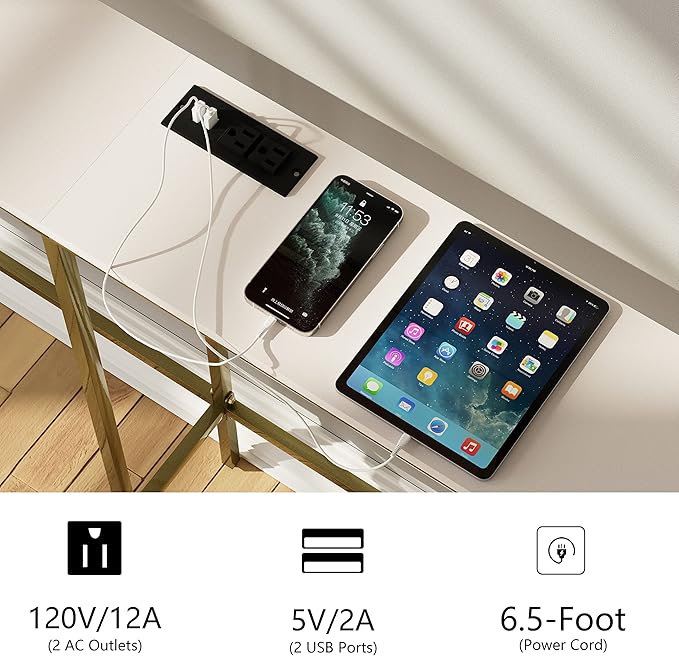 - Perfect Home Facilitles: The sofa table is equipped with 2 socket plugs and 2 USB ports, plus a 79" power cord, which perfectly solves your charging problems. Desk lamps,iphones, iPads, small fans... all is well. No low battery worries.