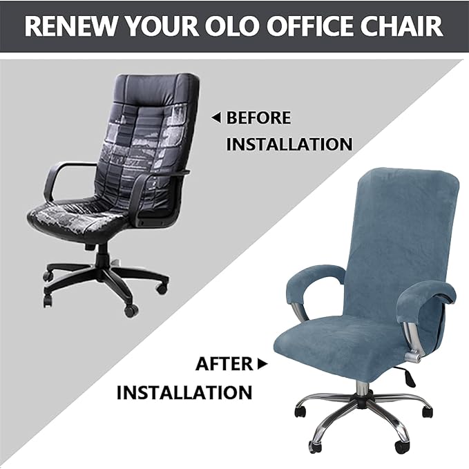 - 【Stretchable Office Chair Cover with Velvet Fabric】: Stretch thicken Soft Velvet Plush & Spandex, comfy office chair covers with armrests made of machine-washable velvet plush fabric, combining high elasticity (fits desk chair, computer chair, ergonomic chair, executive chair), wrinkle-free durability, and fade-resistant technology. Stretchable chair covers seamlessly conceal leather office chair rips/tears while elastic edges ensure secure fit.