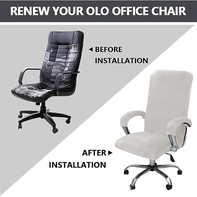 - 【Stretchable Office Chair Cover with Velvet Fabric】: Stretch thicken Soft Velvet Plush & Spandex, comfy office chair covers with armrests made of machine-washable velvet plush fabric, combining high elasticity (fits desk chair, computer chair, ergonomic chair, executive chair), wrinkle-free durability, and fade-resistant technology. Stretchable chair covers seamlessly conceal leather office chair rips/tears while elastic edges ensure secure fit.