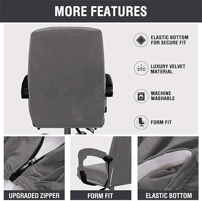 - 【Stretchable Office Chair Cover with Velvet Fabric】: Upgrade your workspace with our luxurious velvet plush comfy office chair cover hugs your like a cloud comfortable,designed to fit large, big and wide, ergonomic office chairs—including executive, high-back, swivel, and mesh office chairs models. The stretchable elastic material ensures a snug and secure fit, while the elastic edges keep it secure, while offering a modern, stylish look. It’s making it ideal for any home or office setting.