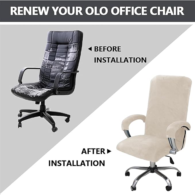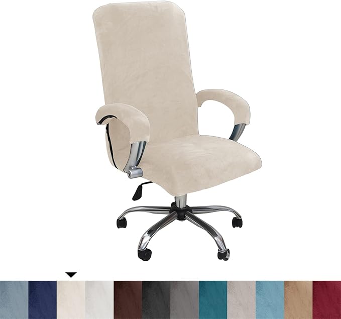 - 【Stretchable Office Chair Cover with Velvet Fabric】: Stretch thicken Soft Velvet Plush & Spandex, comfy office chair covers with armrests made of machine-washable velvet plush fabric, combining high elasticity (fits desk chair, computer chair, ergonomic chair, executive chair), wrinkle-free durability, and fade-resistant technology. Stretchable chair covers seamlessly conceal leather office chair rips/tears while elastic edges ensure secure fit.