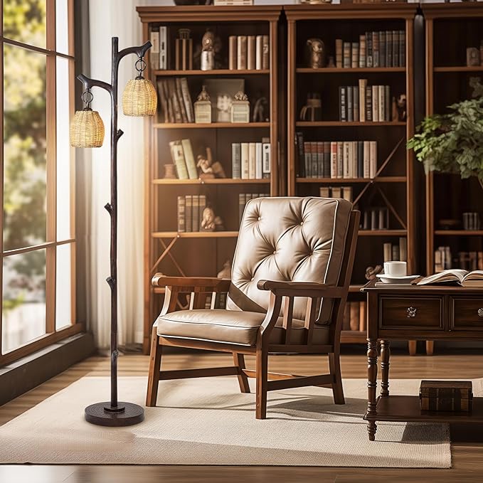 - Two wicker drum shade strip lamp body light sources are suspended from the classic and elegant tree-shaped main light stand, when you are relaxing on sofas, chaise long use and reading chairs, you will feel like you are in a natural tree Underneath, enjoy the serenity of nature, in addition to bright, high-intensity task lighting, it also provides warm light without taking up too much space, ideal for small rooms such as children's rooms, guest rooms, offices, etc.