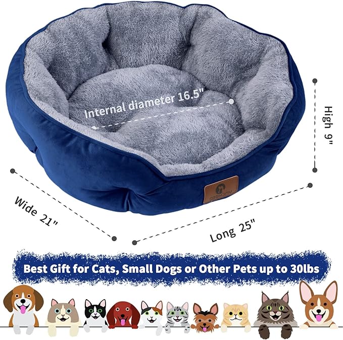 Asvin Medium Dog Bed for Medium Dogs, Large Cat Beds for Indoor Cats, Pet Bed for Puppy and Kitty, Extra Soft & Machine Washable with Anti-Slip & Water-Resistant Oxford Bottom, Blue, 25 inches