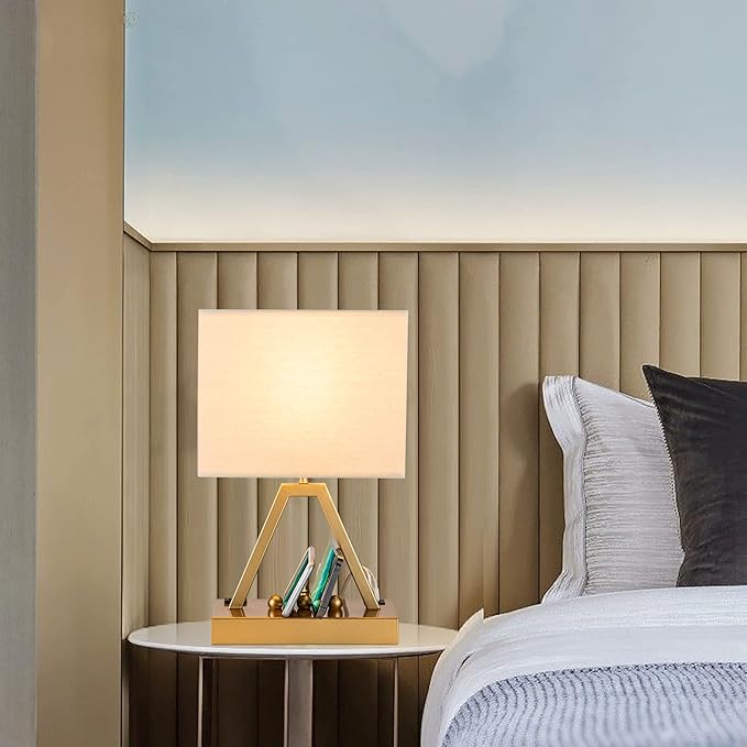 - 【UNIQUE PHONE STANDS DESIGN FOR KEEPING SPACE NEAT】The table lamp is designed with 3 decorative beads on the lamp base, they can hold your cellphone, tablets or electronic devices when charging, suitable for different thickness of your devices. Not only reduce your space but also keep your desktop neat. The base is made of high-quality metal, can prevent to rust and easy to clean. The ladder-shaped design of the lamp pole shows a sense of elegance and the stable structure can avoid wobbling.