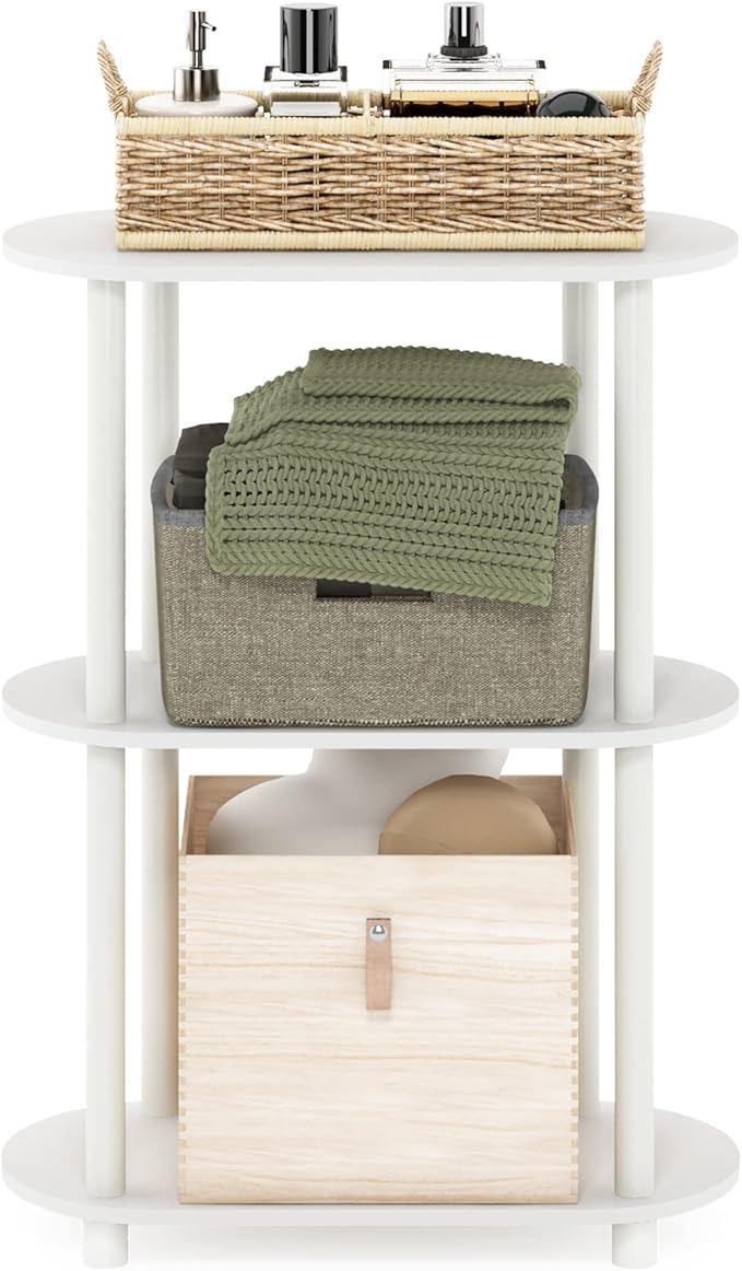 Furinno Turn-N-Tube No Tools 3-Tier Modern Oval Side Display Rack, White/Virgin White