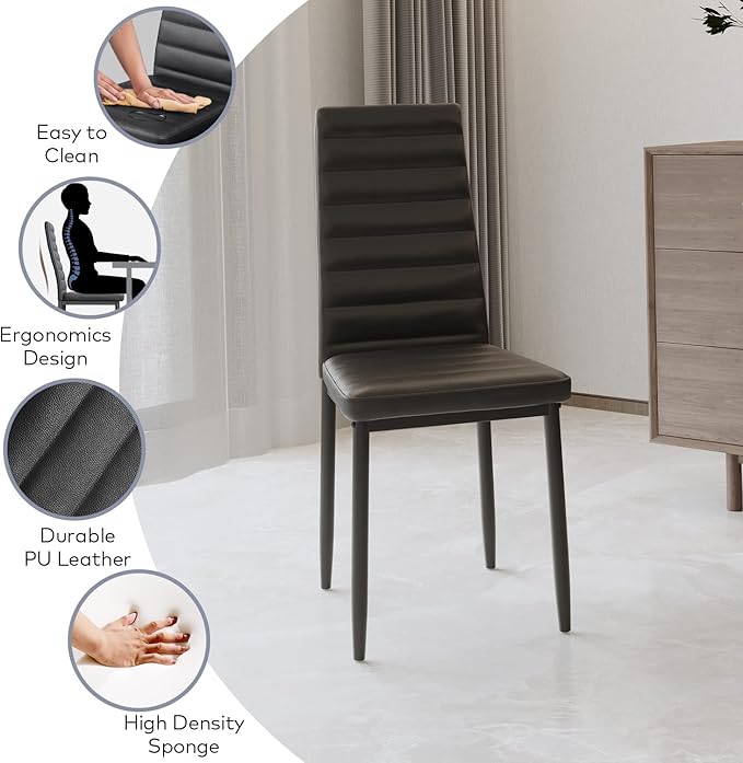 - Well-Designed Seating: The 6-person dining set includes a dining table and 6 cushioned chairs with a streamlined backrest that fits the natural curve of your spine. The seat is padded with soft foam and covered with PU leather, providing a comfortable and supportive experience so you can enjoy every meal.