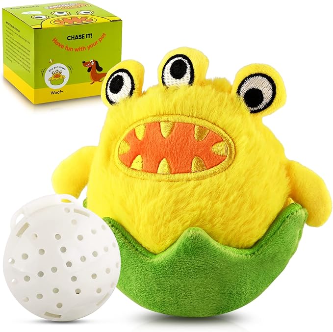 Petbobi Interactive Dog Toys Monster Active Ball for Dogs with Batteries, Self Moving Balls and Plush Cover for Small & Medium Dogs to Chase, Dog Toy Squeaky Crazy Bouncer Ball, Egg Breaker Bobby