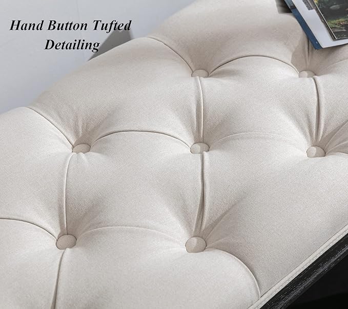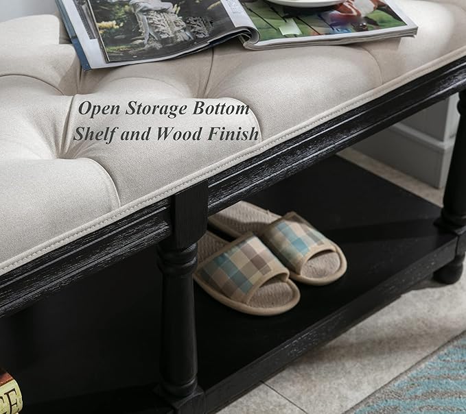 - GORGEOUS: It is accentuated by stylish button tufting, crafted from solid wood with padded seat and open bottom shelf, looks great at the foot of a bed and makes a stylish perch while seating and putting on your shoes.