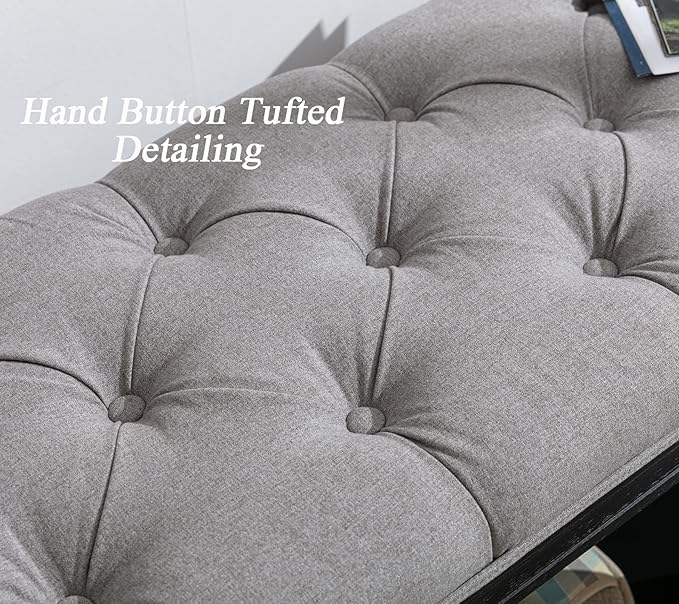 - GORGEOUS: It is accentuated by stylish button tufting, crafted from solid wood with padded seat and open bottom shelf, looks great at the foot of a bed and makes a stylish perch while seating and putting on your shoes.