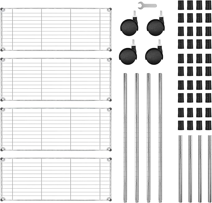 HealSmart Heavy Duty 4-Shelf Storage Shelving Unit, 35.83D x 13.98W x 55.91H Steel Organizer Wire Rack with 1000Lb Capacity, Chrome
