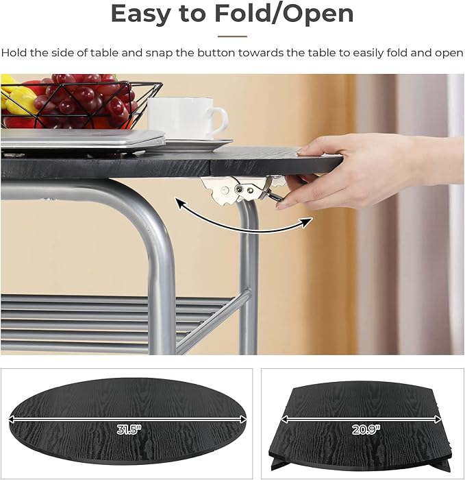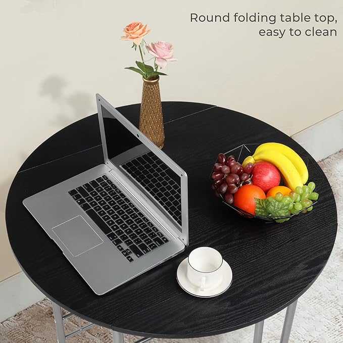 - 【Folding Dining Table Set for 2】Comes with 1 round foldable dining table and 2 chairs.A more affordable price while doesn't sacrifice quality and function,our folding dining set is well made of quality MDF and sturdy metal frame ensures it's stability and durability.