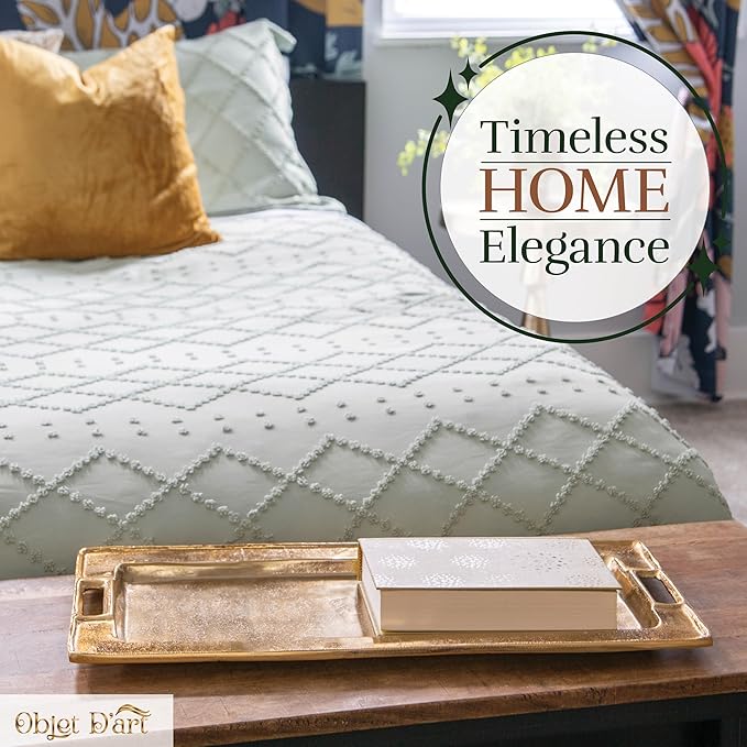 - ELEGANT DECORATIVE TRAYS Reminiscent of an Art Deco piece, our Rectangular Cast Trays have a simple, clean design. No ordinary serving trays, this set makes a stylish backdrop for decorative objects, vases or a seasonal arrangement. They are sure to make a wonderfully impressive addition to your home! This product is for decorative use only, not for use with food.